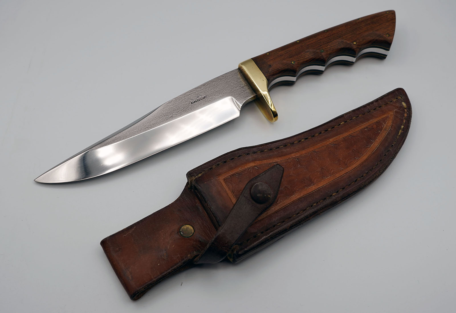 BRAND: SAMSON/PCC MODEL: WEE HAWK (#151) PRICE: $200.00 BLADE LENGTH: ???" HANDLE: MICARTA SHEATH: LEATHER