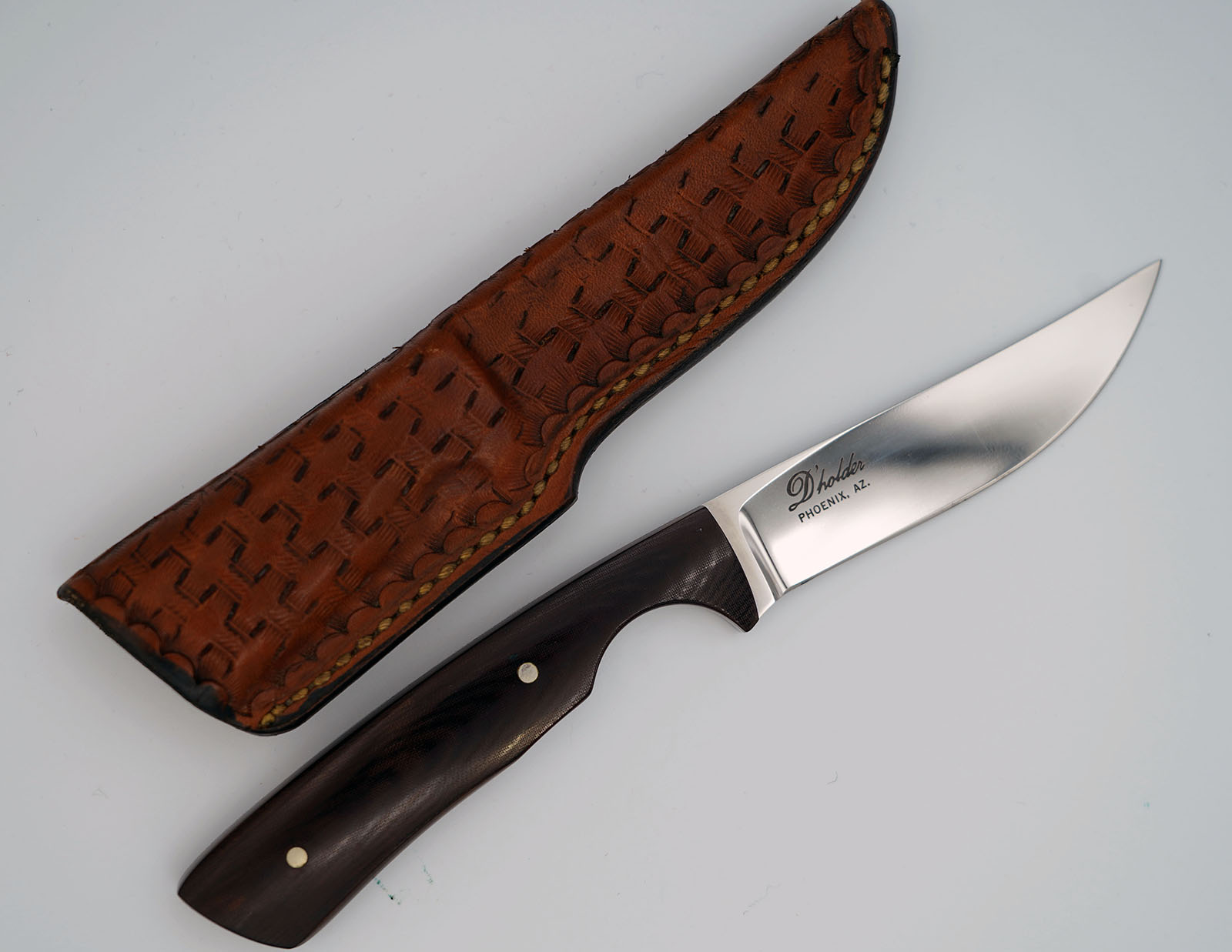 BRAND: D'HOLDER MODEL:BRAND: D'HOLDER (#117) PRICE: $500.00 BLADE LENGTH: ???" HANDLE: MICARTA SHEATH: LEATHER
